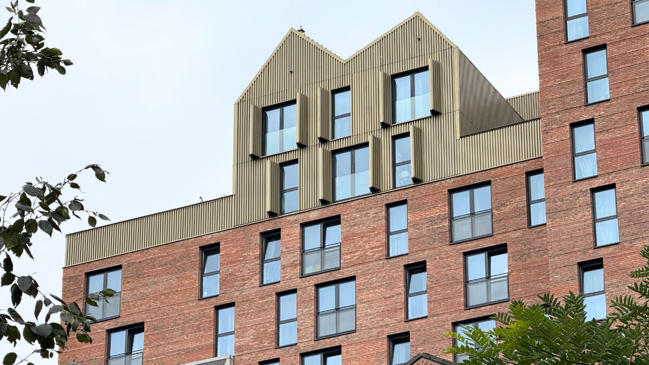 Gilmours delivered a series of bespoke façade elements for Kampus, one of Manchester’s most distinctive residential developments. Our work spanned multiple buildings across the masterplan — from the project’s signature pixel window pods to folded metal panels and castellated cladding systems — each designed, fabricated and finished to meet the architects’ exacting specification.
