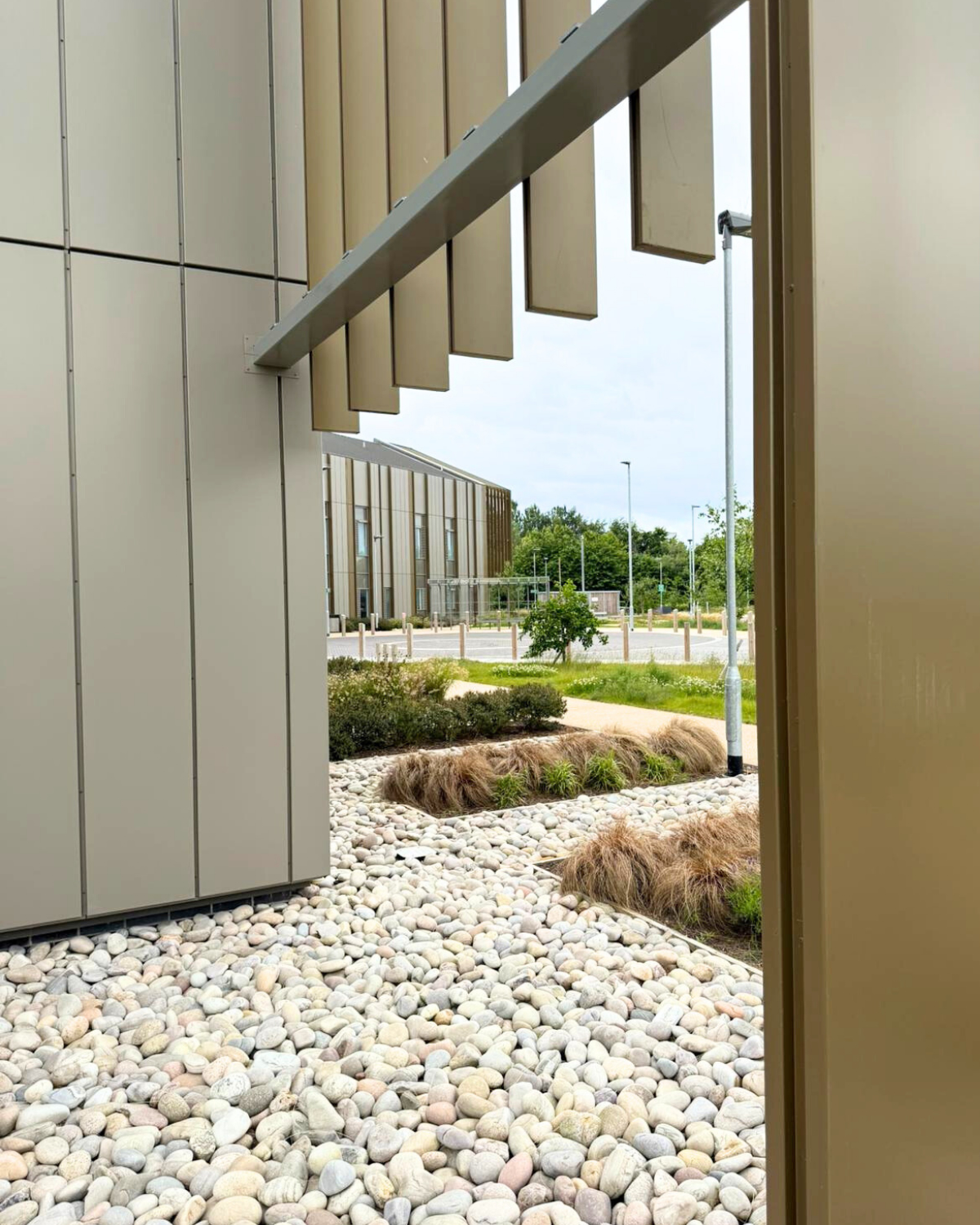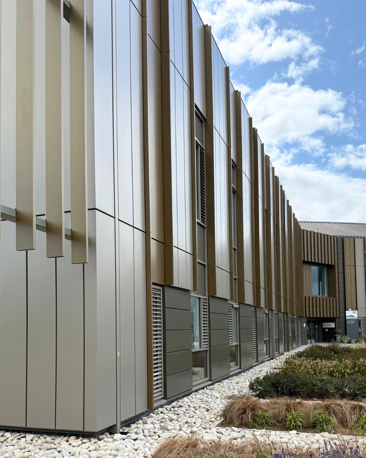 From early design coordination through to full-scale mock-ups and on-site precision, every element was modelled, fabricated, painted and assembled to meet the architect’s intent. The result is a carefully detailed architectural envelope where offset panel depths, crisp shadow lines and coordinated finishing come together with a durable powder coating system to create a calm, refined façade for this important healthcare facility.